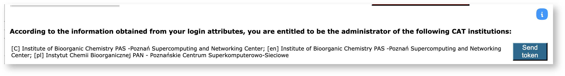 Note: The eduPersonEntitlement attribute is used to mark users' rights to perform some actions in the name of the institution they authenticate with. In this case we are looking for the entitlement to manage eduroam tasks for this institution which is signaled with an appropriate value of this attribute. The NRO admins may set the value to be used within their federation. They do that by setting the value of Custom entitlement value for self-registration option. According to the eduPersonEntitlement specification this value must be an URI. If this option is not set then the default of geant:eduroam:inst:admin will be used.