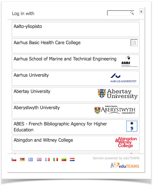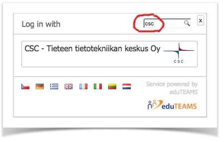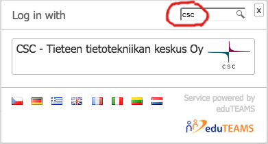 The number of IdPs may be very long. You may narrow down the selection by typing search string to search box in the upper right corner. You need to still select the IdP by clicking it. You are now directed to home organization IdP.