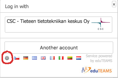 As you return to Discovery Service it will remember the IdP you have previously selected. You may use different IdP by clicking the 'Another account'. To remove previously selected IdP you need to click the 'setup' icon on the lower left corner.