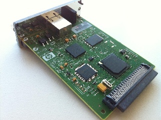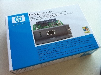 These days Hewlett Packard only sells two internal print server cards for their printers, the HP Jetdirect 620n and the 635n.